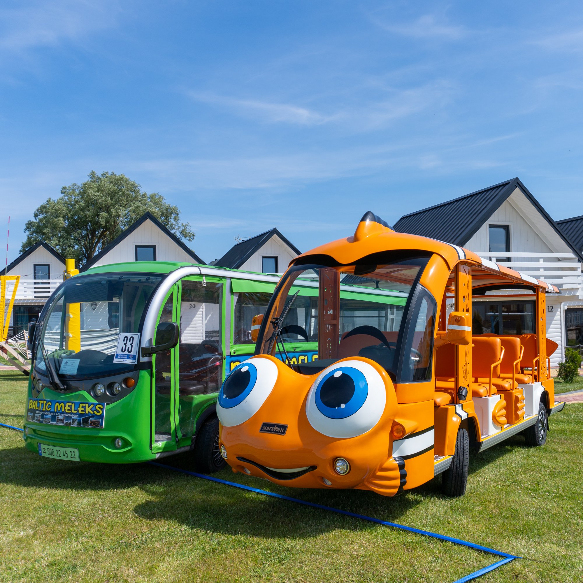 Do szerokiej, piaszczystej plaży mamy 1200 metrów — spokojny spacer zajmuje około 13–15 minut. W lipcu i sierpniu zapewniamy bezpłatny transport melexem, który kursuje codziennie rano.